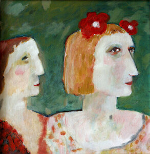 2014Een vrij portret van mijn zuster en mij in acryl.