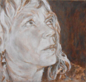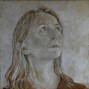 2014ik schilderde 50 portetten van mensen die omhoog kijken en besprak, wat omhoog kijken voor hen betekende. dit is er eentje uit die serie.