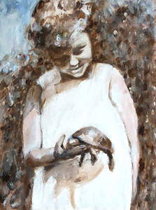 2011Naar aanleiding van een fotootje schilderde ik dit portret van mijn moeder met haar schildpad. omstreeks 1934.